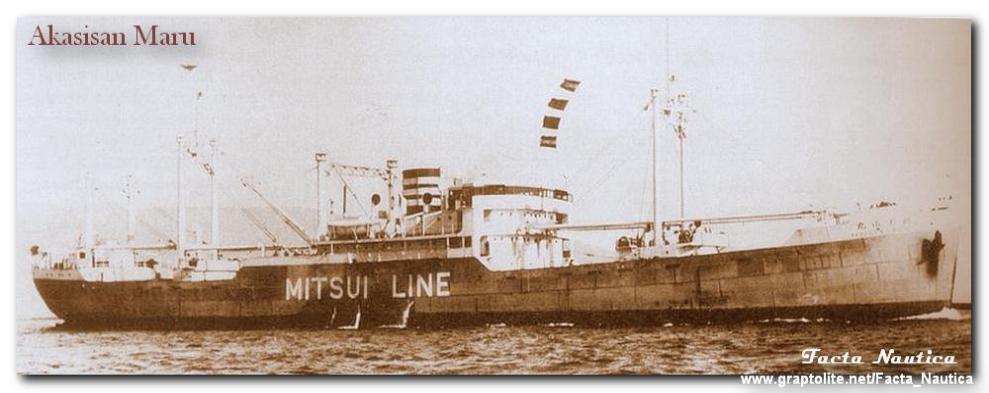 Japoński statek m/s AKASISAN MARU zatopiony został przez amerykański okręt podwodny USS SANDLANCE. The Japanese motor vessel AKASISAN MARU was torpedoed and sunk by US submarine SANDLANCE on March 3, 1944.