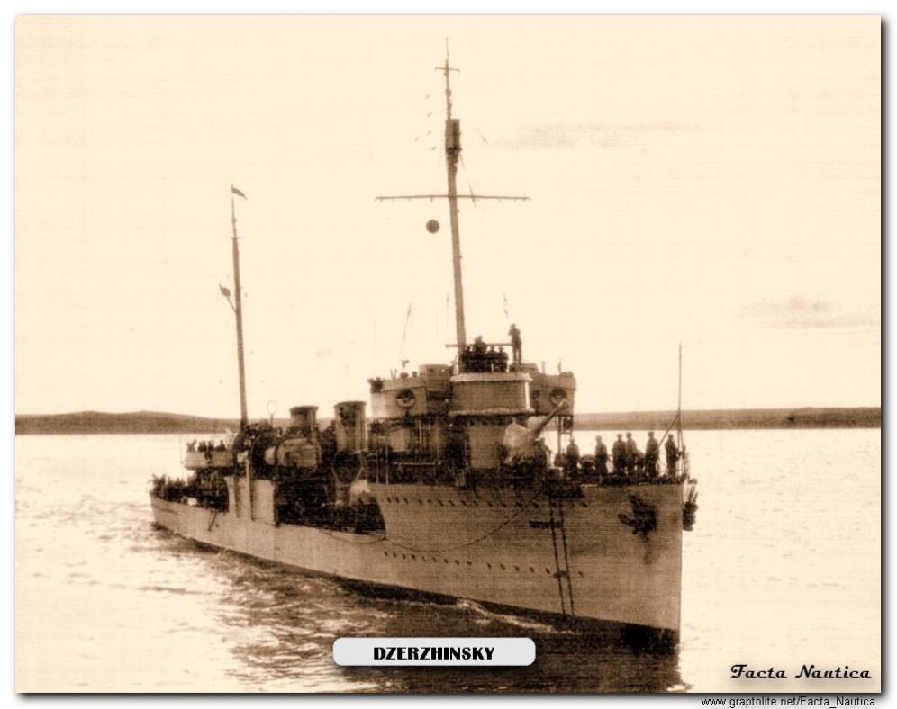 ---------Radziecki niszczyciel DZIERŻYNSKIJ zakończył swoją służbę w radzieckiej Flocie Czarnomorskiej 14 maja 1942 roku. Tego dnia, w warunkach bardzo złej widoczności powodowanych silną mgłą, zszedł z wytyczonego toru w zagrodzie minowej na podejściach do Sewastopola. Skutkiem tego było wejście na minę o godzinie 12.27 i błyskawiczne zatonięcie okrętu. Skutki błędu nawigacyjnego okazały się tragiczne. Na pokładzie niszczyciela oprócz 170 członków załogi znajdował się 125-osobowy oddział żołnierzy - spośród nich aż dwustu pięćdziesięciu ludzi zginęło razem z niszczycielem ...